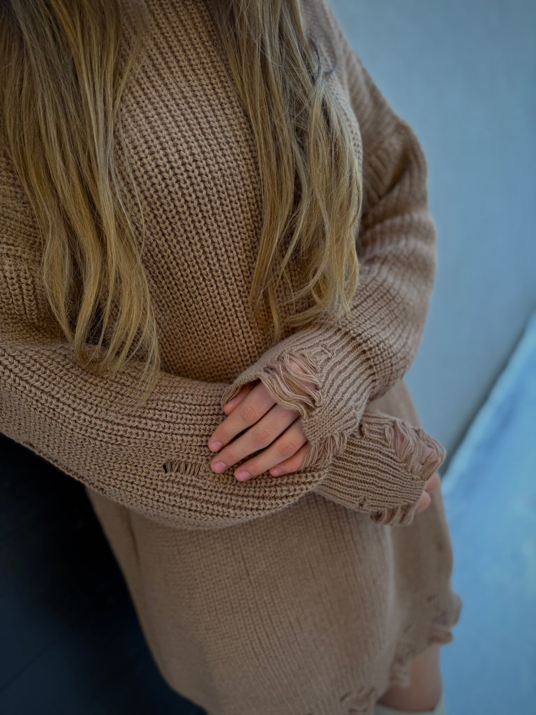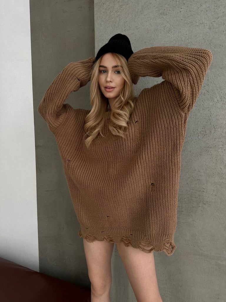 Brīvi pieguļošs trikotāžas džemperis, kas dekorēts ar dekoratīviem plēsumiem.
